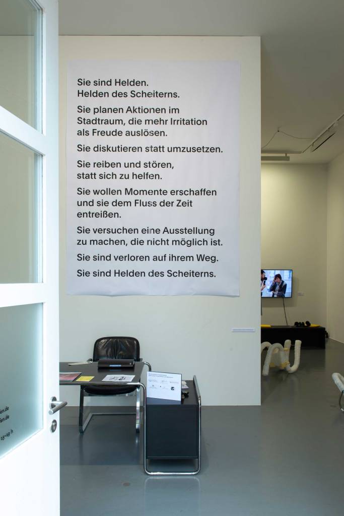 Ziel der Ausstellung war es, in einem gemeinsamen Dialog zwischen Künstlern und dem Kurator, Julian Denzler, eine Ausstellung zu konzipieren, deren Inhalt aus Performances und Objekten bestehen soll, die allesamt in Friedrichshafen durchgeführt wurden. Auf diese Weise sollte der Stadtraum Eingang in den Kunstverein finden und vice versa die Rezipienten des Kunstvereins ihren gewohnten Stadtraum neu erleben.