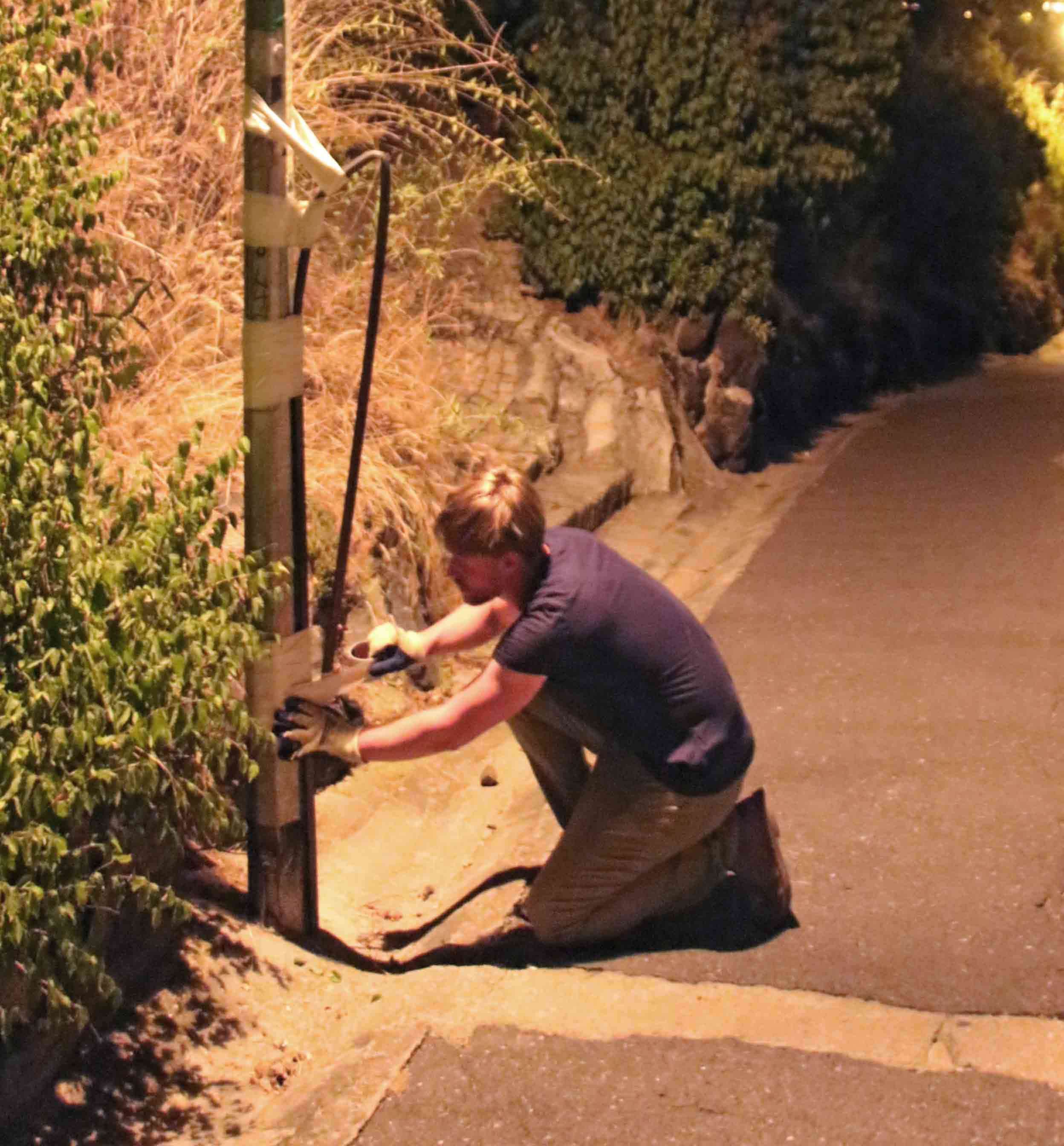 Prague (CZ)/ I fix a metal rod of three meters on a Praguer street lamp. I want to bent this metal line to a circle by my body weight. I fix the result of this action and leave it here. Gefällt mir Wird geladen …