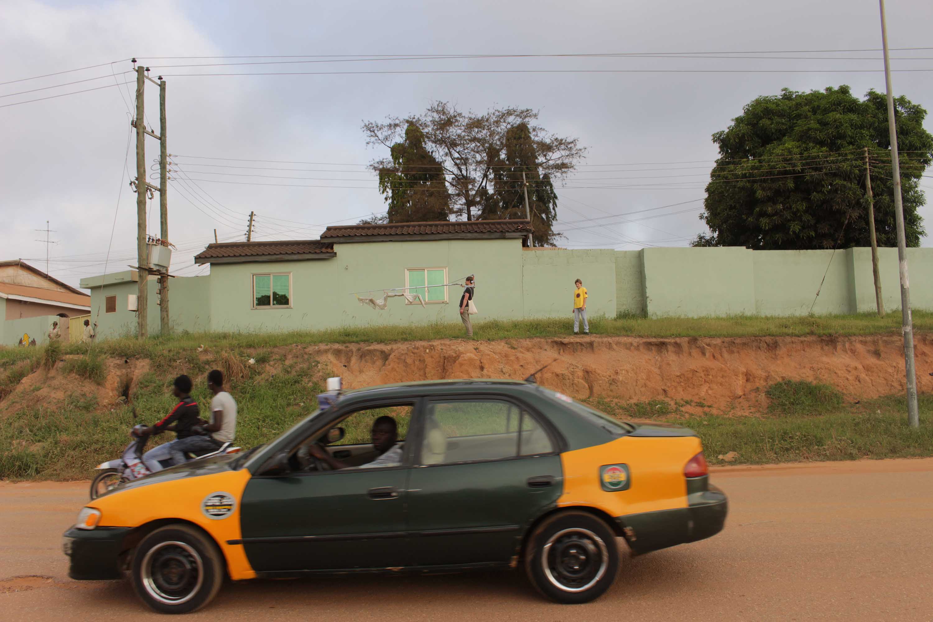 I carry with me a specially designed sculptural work throughout my entire journey in Ghana. I spontaneity use it at any time and any place that I see fit while traveling. It accompanies me in this continually shifting and foreign surrounding, like a talisman offering safety and stability. Should I decide to use it, I attach everyday objects to the mounted pole of the structure. Walking and carrying it becomes a sculptural act, which relates to the cultural idiosyncrasies of transportation. However the oddity of the performance disturbs this thus turning it into its determining theme.